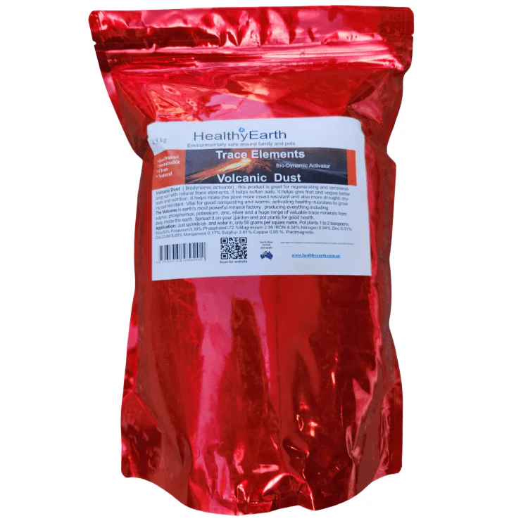 Healthy Earth Volcanic Rock Dust is a trace mineral fertiliser and Bio-Dynamic soil activator, which is excellent for mineralising and softening soils. It helps give fruit and veggies a better taste and nutrition. It helps make the environment more insect-resistant and helps prevent the soil from drying out. Good for composting and worms, helping healthy microbes grow.